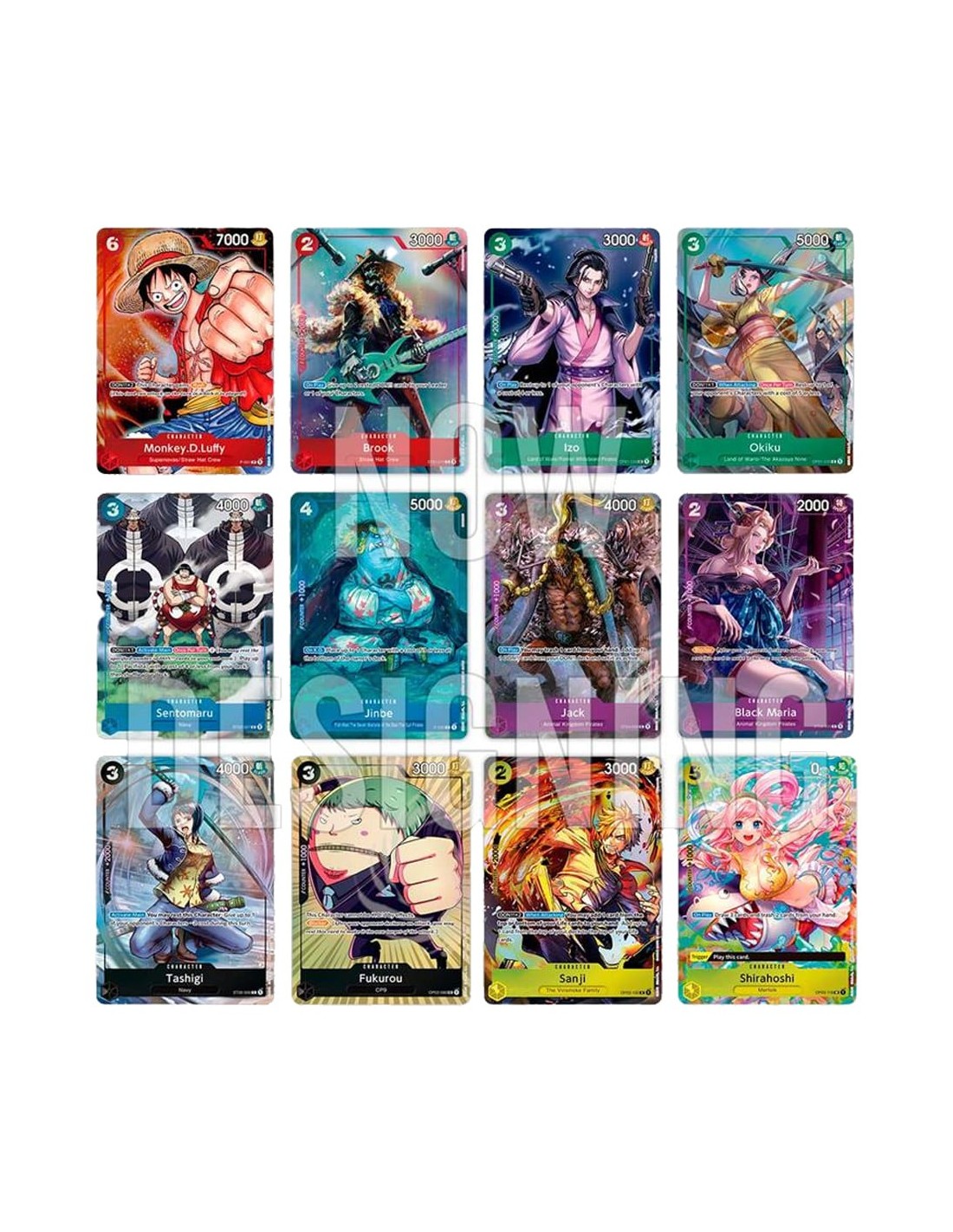 Premium Card Collection BANDAI CARD GAMES Fest 23-24 Edition in inglese con 12 carte esclusive holo e textured foil. Set da collezione con artwork premium alternativo e finitura speciale. Include card booklet per la presentazione. Perfetto per collezionisti e fan di One Piece!